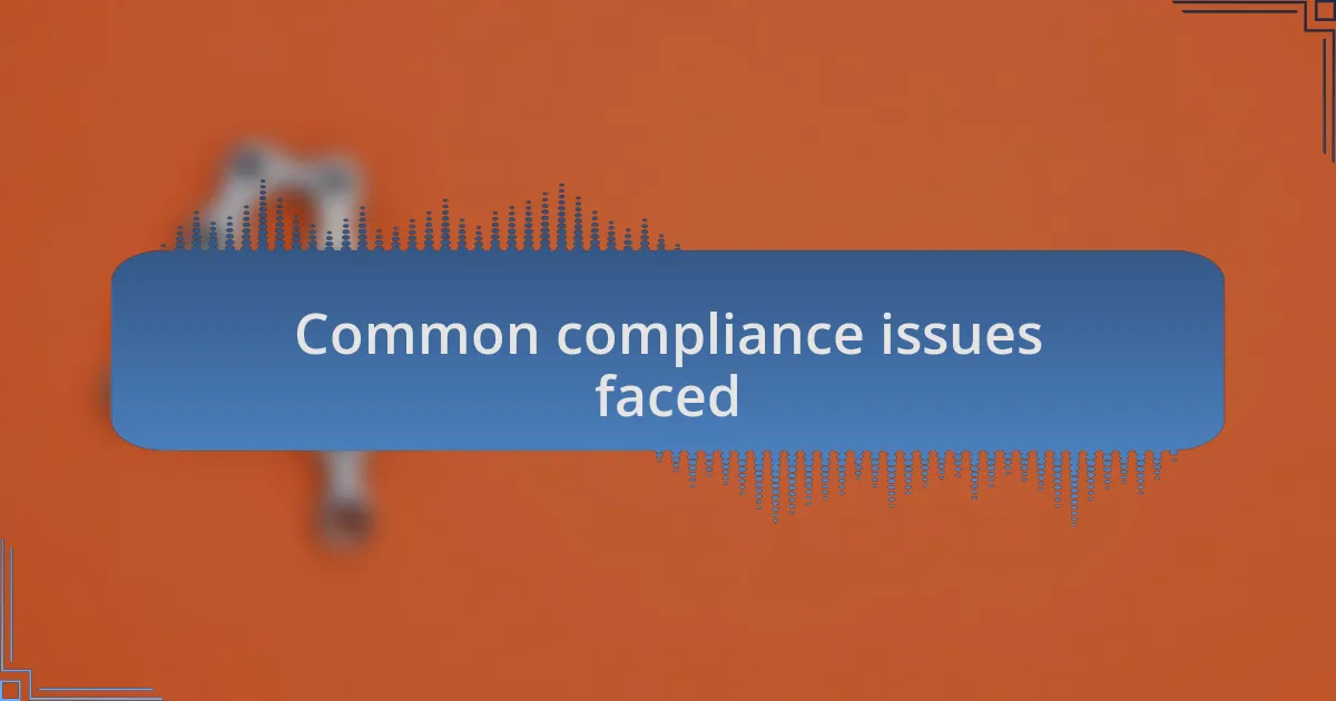 Another common issue is the challenge of maintaining ongoing compliance. I remember working with a creative agency that had initially done well with their compliance documentation but soon found themselves disorganized as they expanded. It was a stark reminder that compliance isn’t a one-time effort; it requires continuous attention and updates. Has your team ever fallen into the trap of thinking that once you’re compliant, you can relax?